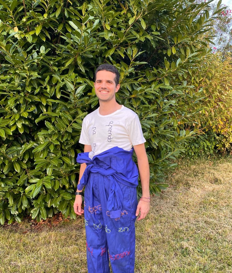 Na instalación Filu - pallabra, esti alcuentru y reconciliación ente pasáu y futuru materialízase en dos exes principales. Per un llau, para l'artista la tradición toma forma al traviés de lo testil. Recibe esti legáu de los sos dos güeles y la so madre, que teníen una habilidá escepcional para coser, texer y bordar. El monu de trabayar en campu, la ropa interior, la camisa de los domingos… toos estos oxetos son susceptibles de tresformamientu al traviés del bordáu.