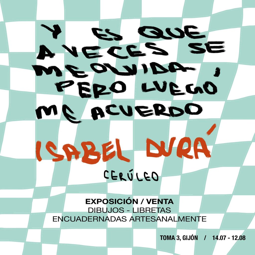 Isabel Durá (Valencia, 1997) presenta este mes de junio su expo "y es que a veces se me olvida, pero luego me acuerdo" en Toma 3, Gijón.